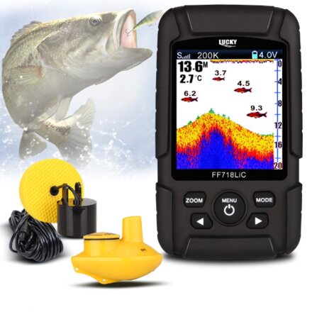Эхолот Lucky FF718LiCD – прибор, который придётся по душе любому рыбаку, желающему получить от рыбной ловли, как практическую пользу, так и удовольствие. Это – новая, усовершенствованная модель, грамотно сочетающая достоинства проводных и беспроводных устройств. Он легко обнаруживает рыбу, находящуюся на глубине. Тщательно сканирует её и окружения, определяя признаки, которые могут представлять интерес для пользователя, а именно: размер, температуру воды, местоположение, рельеф. Вся эта и другая не менее важная информация тут же отображается на жидкокристаллическом дисплее в виде символьных изображений, картинок, цифр, букв